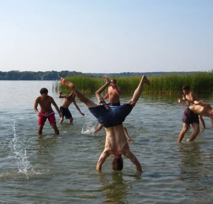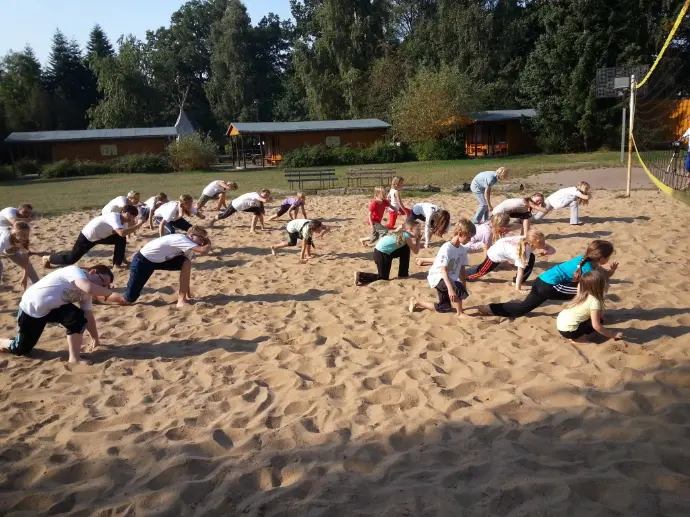 Später gab es ein Training für die Fortgeschrittenen, ein Akrobatiktraining für die Kinder und sogar eine Protugiesisch Lektion. Zwischenzeitlich war aber auch genug Zeit baden zu gehen, Tischtennis zu spielen oder das Volleyballfeld auszuprobieren.
