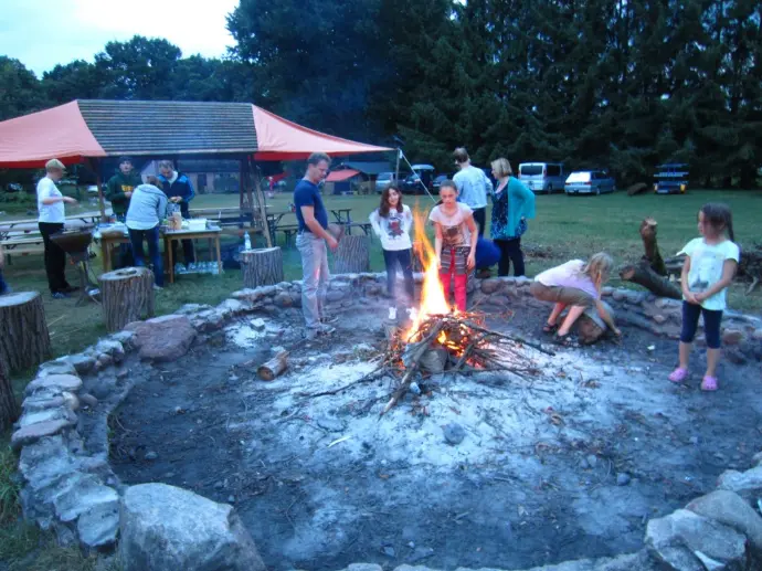 Jeden Abend konnten wir gemütlich am Lagerfeuer sitzen. Am Freitag stand Singen auf dem Programm. Bis 22 Uhr wurden alle in den Sommerferien geübten oder auch nicht geübten Capoeira-Lieder gesungen. Am Samstag wurde gegrillt und dann später am Lagerfeuer die müden Knochen ausgeruht.