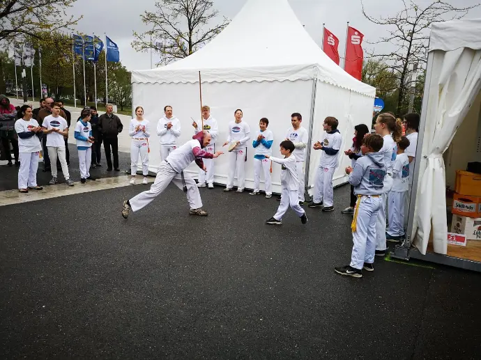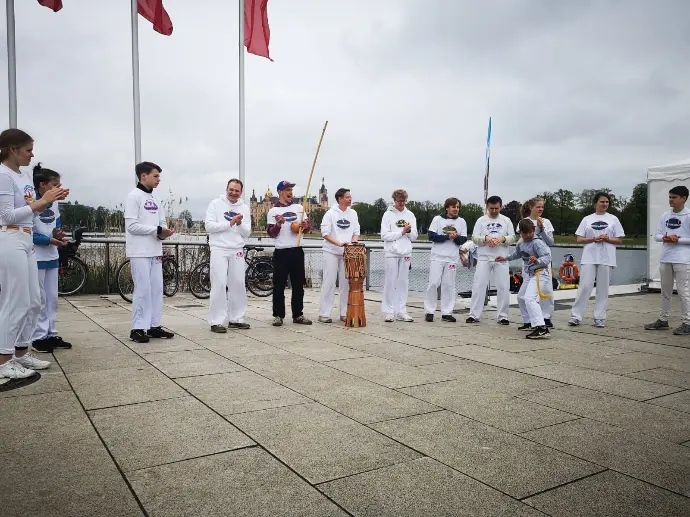 Wir haben die Möglichkeit wahrgenommen, uns beim Pressefest der Schweriner Volkszeitung zusammen mit anderen Schweriner Vereinen in einem Pavillion des Stadtsportbunds (SSB) zu präsentieren. Mit den beiden Capoeira-Shows und einem Mitmachangebot haben wir vielen Schwerinern zeigen können, was Capoeira ausmacht.