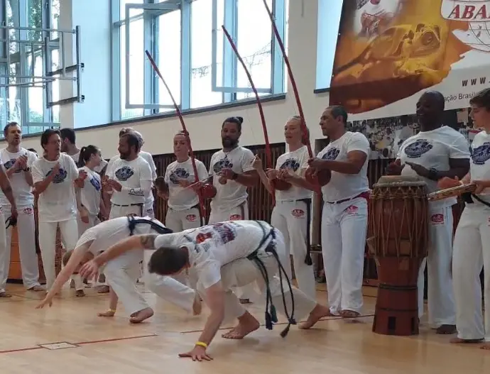 Capoeira war in der Sklavenzeit in Brasilien eine Form der Sklaven sich körperlich und kämpferisch zu betätigen. Zusammen mit der Musik wurde eine Kultur geschaffen, die von heutigen Capoeira Gruppen weiterhin gepflegt wird. Viele Lieder handeln immernoch von den Entbehrungen und Sehnsüchten der Sklaven.